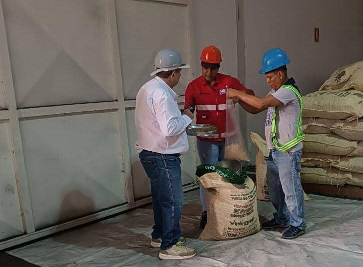 La Guaira, 13/08/2025.- En un esfuerzo por fortalecer la economía productiva del país, en el Patio Único de Exportación del Puerto de La Guaira, se llevó a cabo el reconocimiento por parte de los entes encargados de carga contentivo de café verde en grano con destino a la República de Belarús.