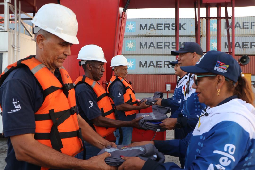 La Guaira, 20/02/2026.- En un esfuerzo continuo por elevar los estándares de protección laboral y eficiencia portuaria, Bolivariana de Puertos (Bolipuertos) en la terminal de La Guaira realizó la entrega formal de bragas de seguridad especializadas al personal de amarradores del recinto.