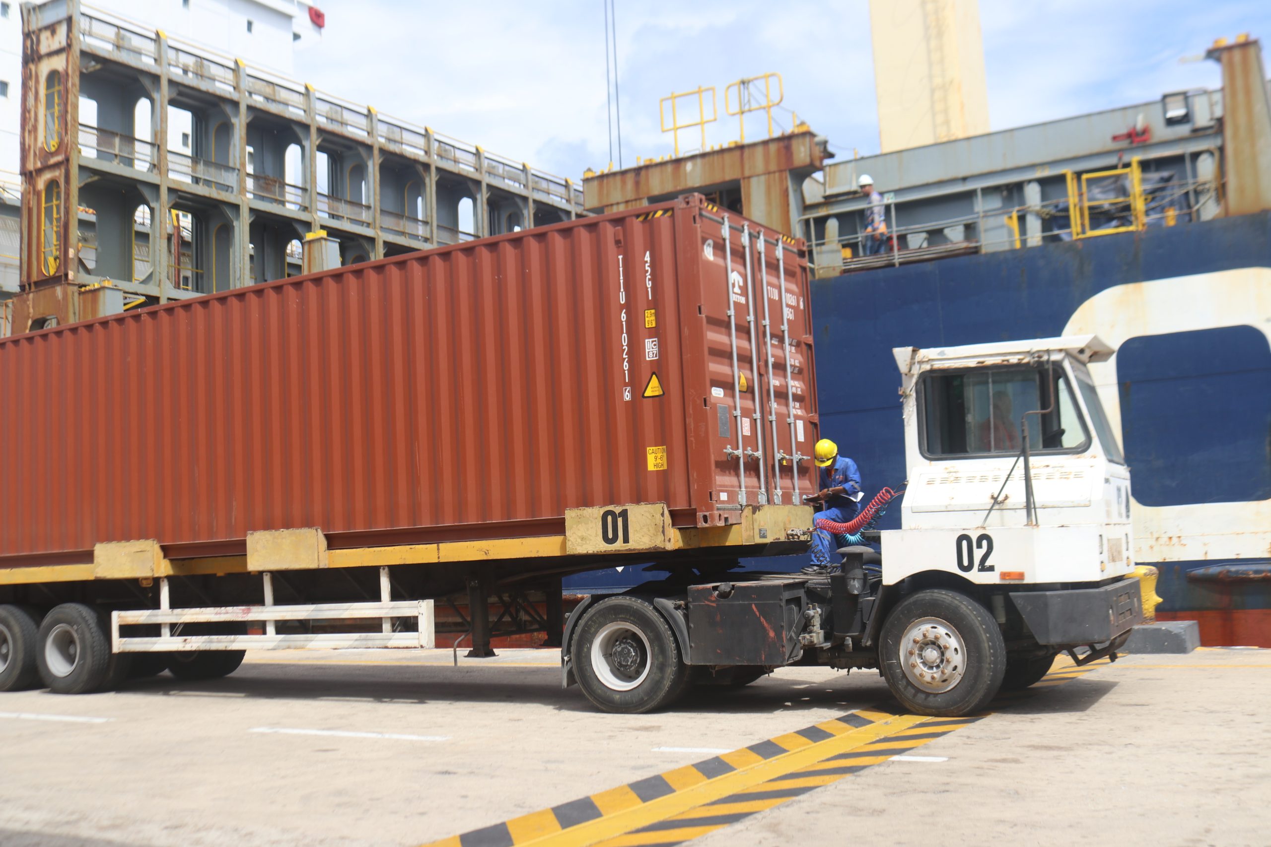 La alta eficiencia que caracteriza al talento humano de la terminal portuaria se evidencia en el desarrollo operativo, permitiendo la descarga de 151 equipos contenerizados lo que se transforma en un total de 2007,37 toneladas. De igual manera se menciona que, entre los insumos a descargar resaltan los siguientes: el 44% se detalla en vehículos y sus partes; construcción, ferretería, productos electrónicos, muebles, lubricantes, textiles, alimentos, salud y cuidado personal, entre otros.